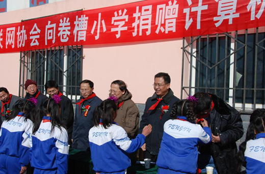 11月17日,在青海省互助土族自治县南门峡镇卷槽明德小学,隆重举行了中国互联网协会2009互联网公益活动向该小学捐赠网络教室仪式。此次捐赠仪式得到了各方领导的高度重视,青海省通信管理局章建良局长、省教育厅高海滨副厅长、省互联网协会郭建勋秘书长、西宁海望科技电子有限公司侯林总经理、互助县乔志旭副县长、教育局郑副局长及南门峡镇党委书记、卷槽明德小学曾校长等相关领导不辞辛劳、踏雪进村入校,冒着凛冽的寒风参加了本次仪式。此外,青海省电视台、互助县电视台现场跟踪采访报道了现况。